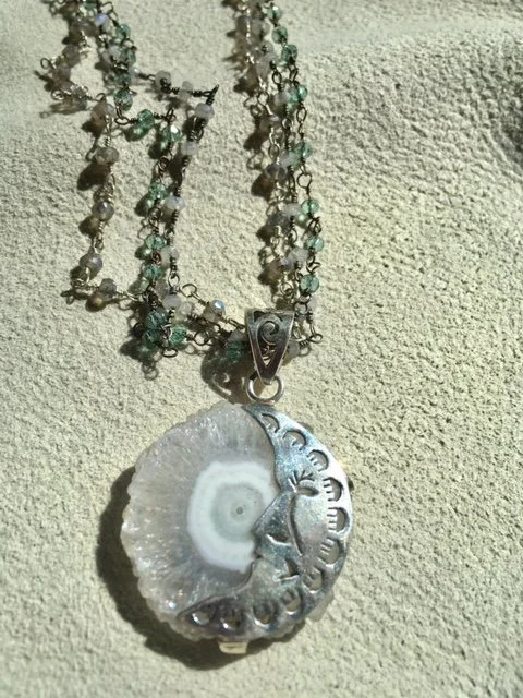 Display your passions with time-honored symbols. These Re-Imagined Heirlooms are thoughtfully crafted — combining vintage and antique sterling silver, semi-precious stones, handmade lampwork glass beads, vintage Swarovski crystal, and small treasures gathered from Nature — to narrate your story.